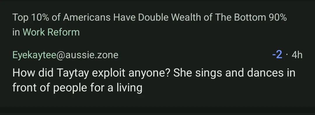 Not a surprise you’re the same person defending billionaire Taylor Swift in another thread
