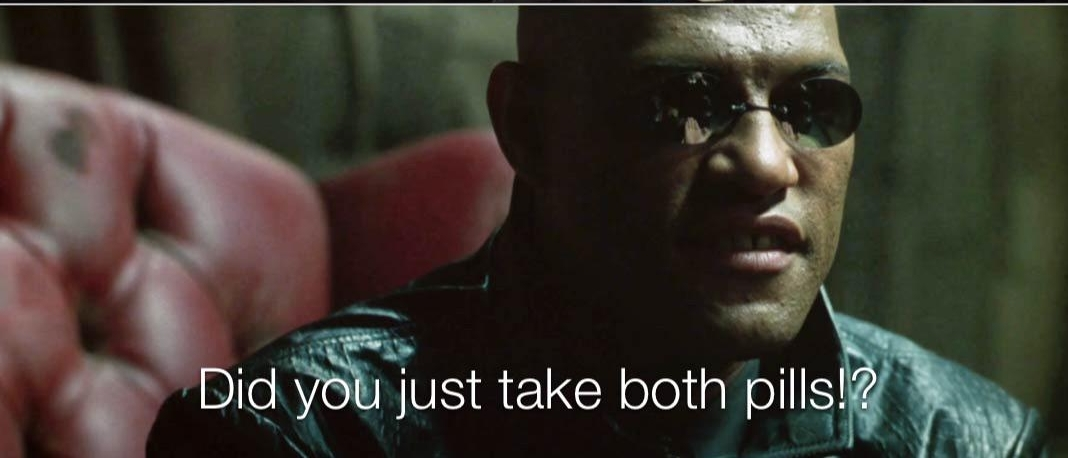 You take the red pill, you wake up to the real world.