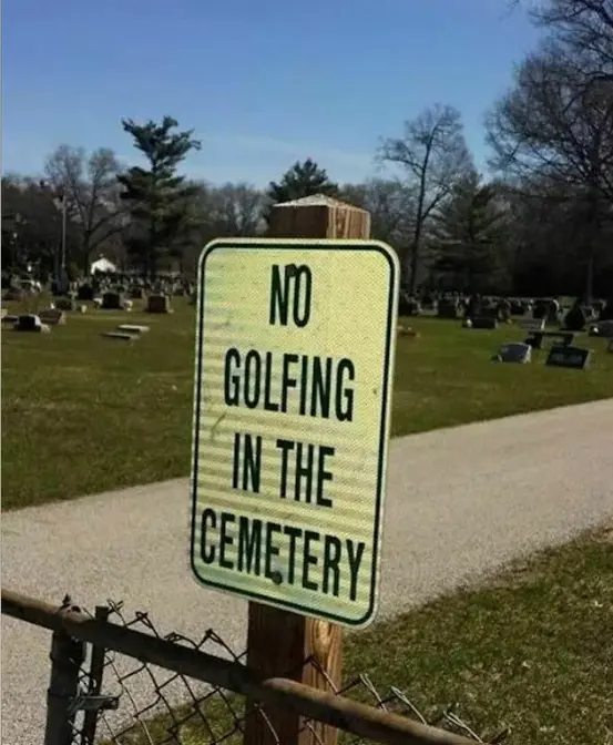 I’m guessing this is next to a golf course, and people try to keep playing the ball after it lands in the cemetery.
