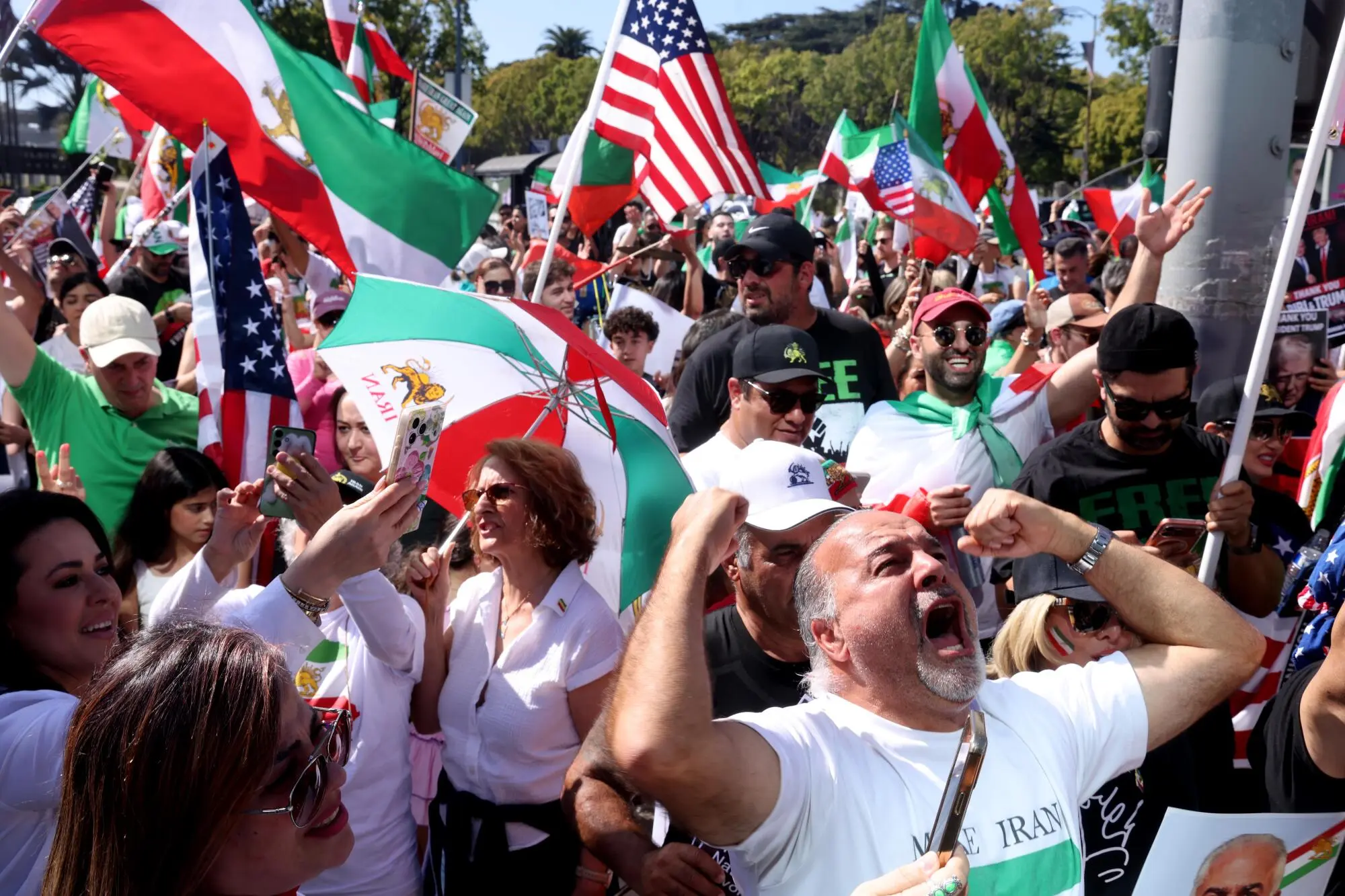 Crowds of Iranian-Americans took to the streets of Westwood on Saturday to celebrate the U.S. and Israeli strikes on Iran and the reported formation of a provisional government by opposition groups, marking a moment many said they never expected to witness in their lifetimes.