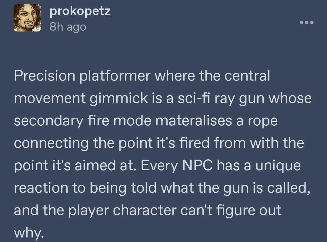 If you’re wondering, the punchline is that the gun’s name is “Rope Blaster”. i.e. it sounds like it’s shooting out a lot of cum.