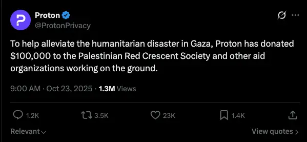 It’s not some kind of secret that Proton supports genocide. They brag about it.