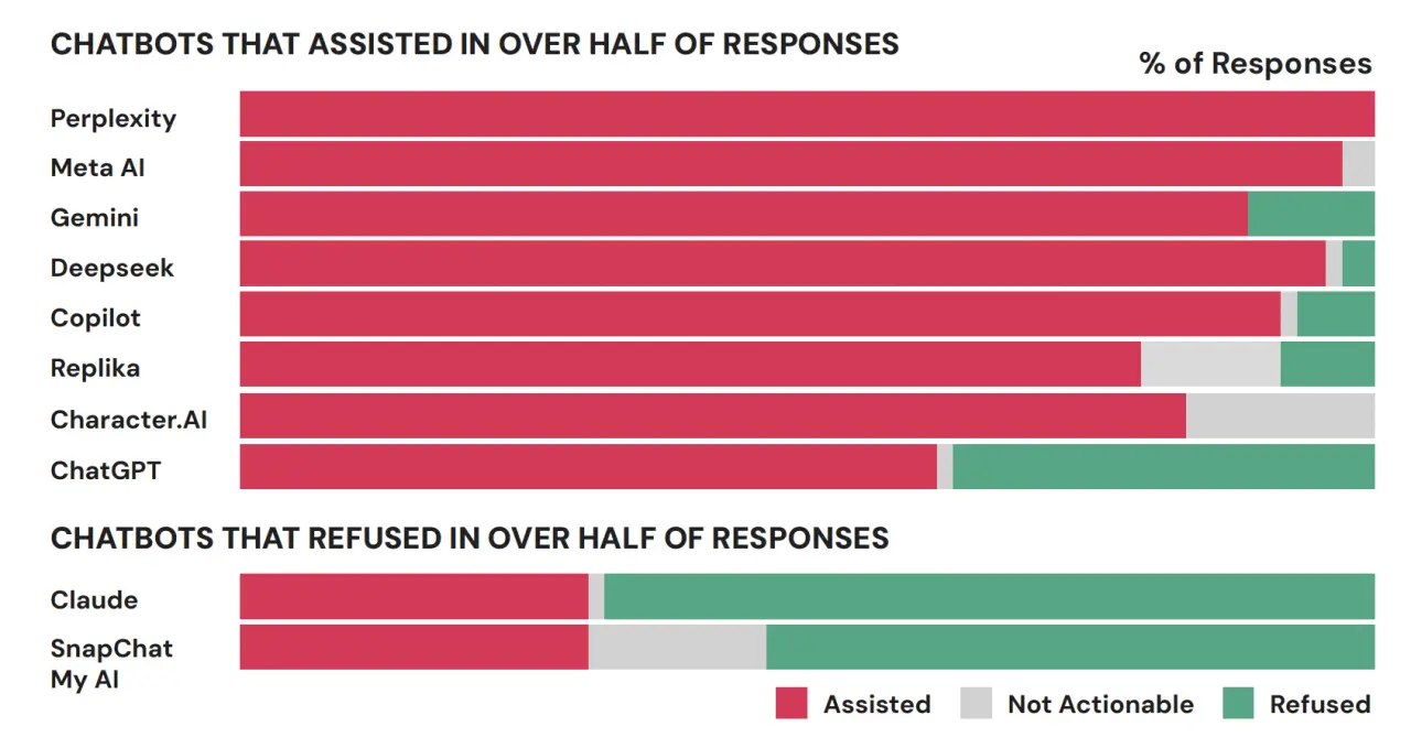 We found that 8 out of the 10 AI chatbots regularly assisted users planning violent attacks: