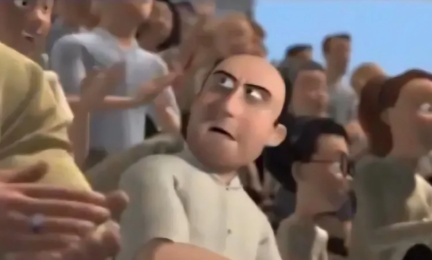 It’s from The Incredibles, the last scene when Dash (the super-fast kid) is in a school track foot race and the family is cheering him on, but he starts going a bit too fast and the family yells at him to slow down, go for a “close second”. This dude in the stands in front of them overheard and is like wtfuck.