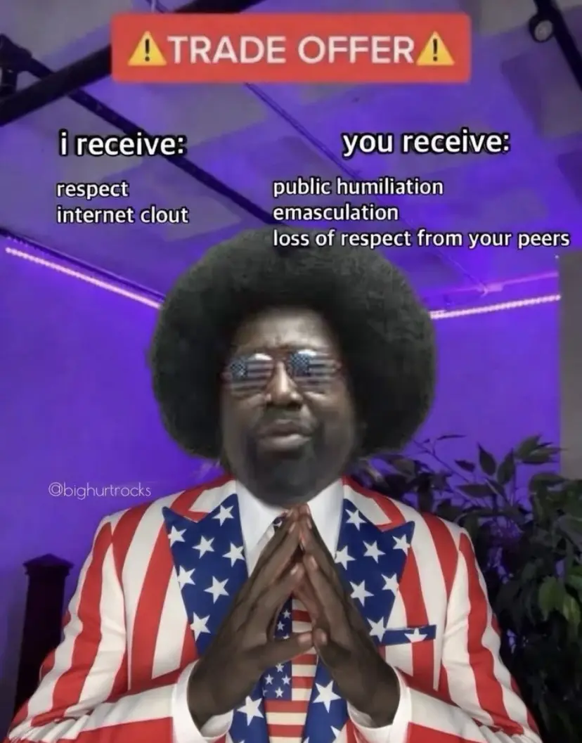 For context this is at the National Libertarian Convention during Afroman’s run for president in 2024. It doesn’t necessarily mean he’s a Trump supporter, but it’s certainly a bad look (and it does mean he’s a libertarian, which depending on what your own opinions are is also a pretty bad look).