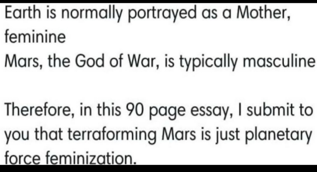thespcicifcocean@lemmy.world to Lemmy Shitpost@lemmy.world · 1 day agoTerraforming marsimagemessage-square21linkfedilinkarrow-up1680arrow-down16