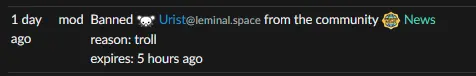 minus-squareUrist@leminal.spacelinkfedilinkarrow-up1arrow-down1·26 days ago Ban notifications also get sent to your inbox. Nope.
