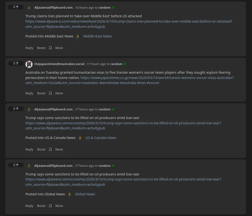 Yeah, I checked after the comments here and it’s maybe taking some time to send the posts or there is a problem with the threads/sending to the communities. On my instance, the posts are reaching after 15 to 30 minutes. Maybe there needs to be some better integration, maybe talking to the flipboard team or having some different integration, but idk.
